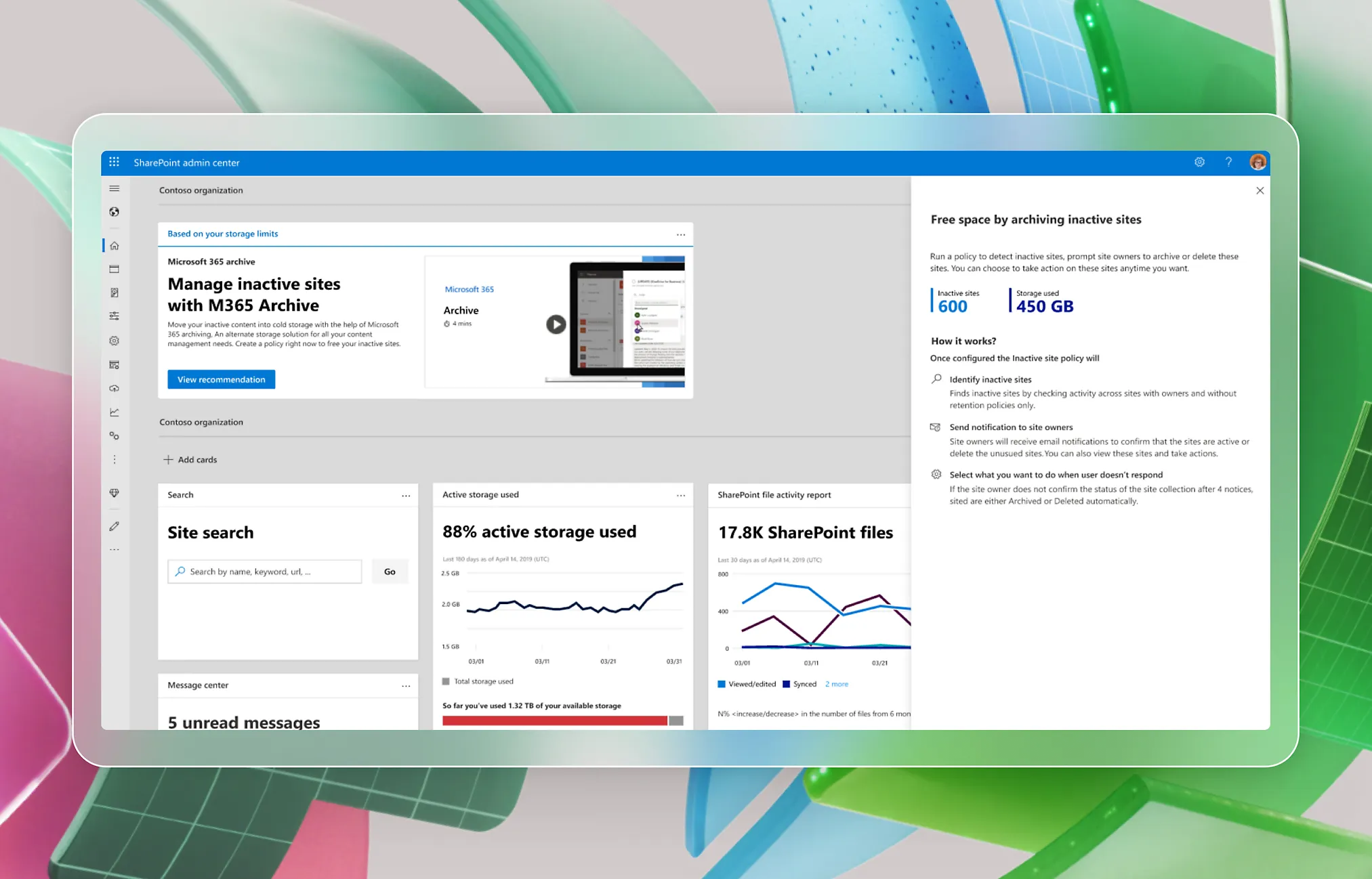 - **Security and compliance: **Help ensure data safety with Archive and Microsoft Purview security features, retention policies, and sensitivity labels.
