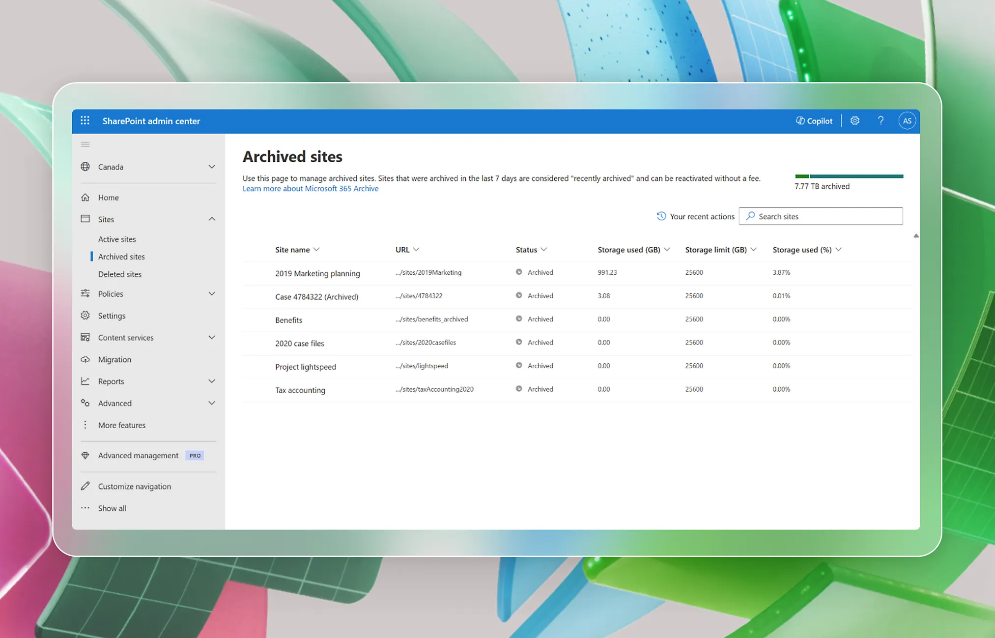 - **Seamless management within Microsoft 365: **Easily manage archived SharePoint sites without the need for external storage.