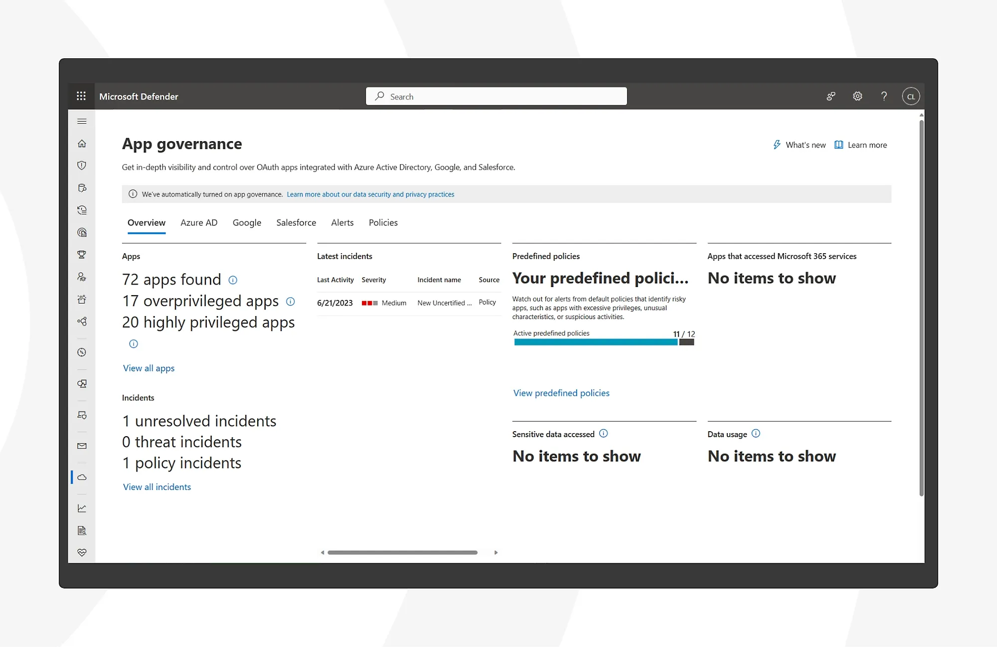 Get full visibility of your SaaS app landscape and help protect your apps with Defender for Cloud Apps.