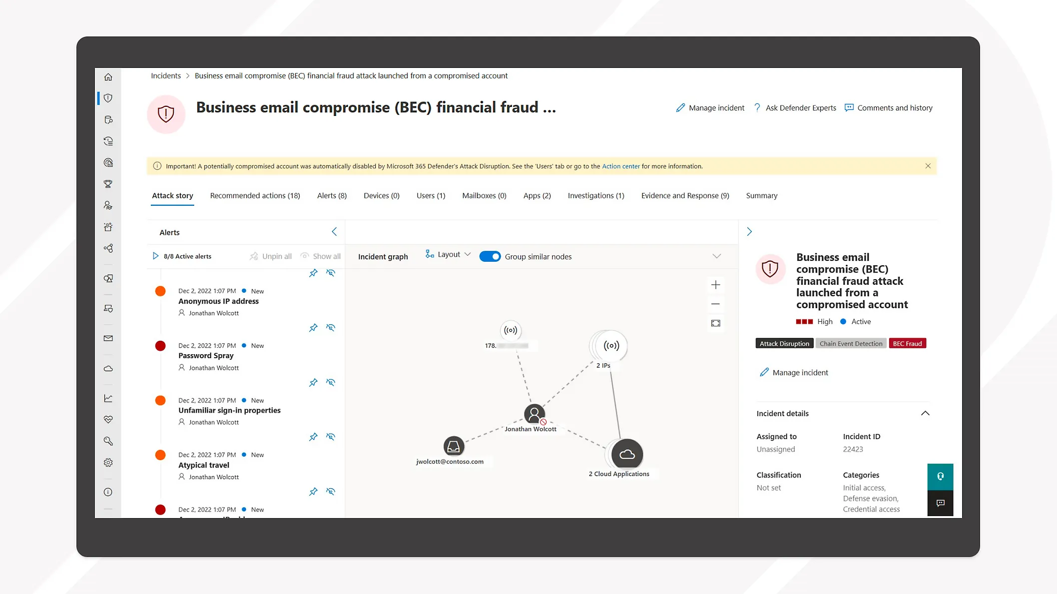 - **Enable rapid response with XDR-prioritized incidents: **Remediate cyberthreats quickly and eliminate the need to sift through random information. Get a complete view of the cyberattack chain and prioritized investigation and response at the incident level.