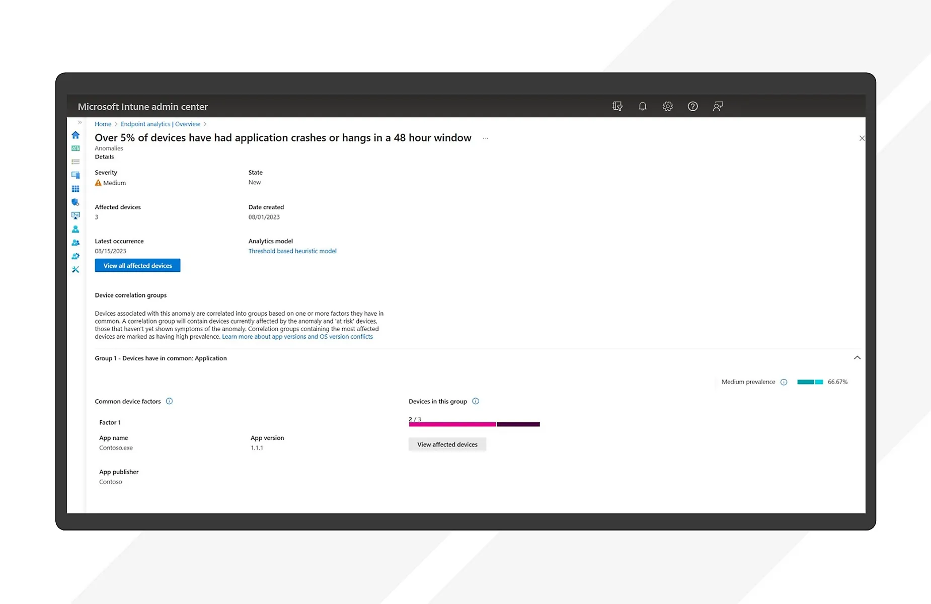 - **Preemptively detect and prevent device and app anomalies: **Identify and discover meaningful patterns and trends using AI, analytics, and machine learning and detect issues before they impact productivity.