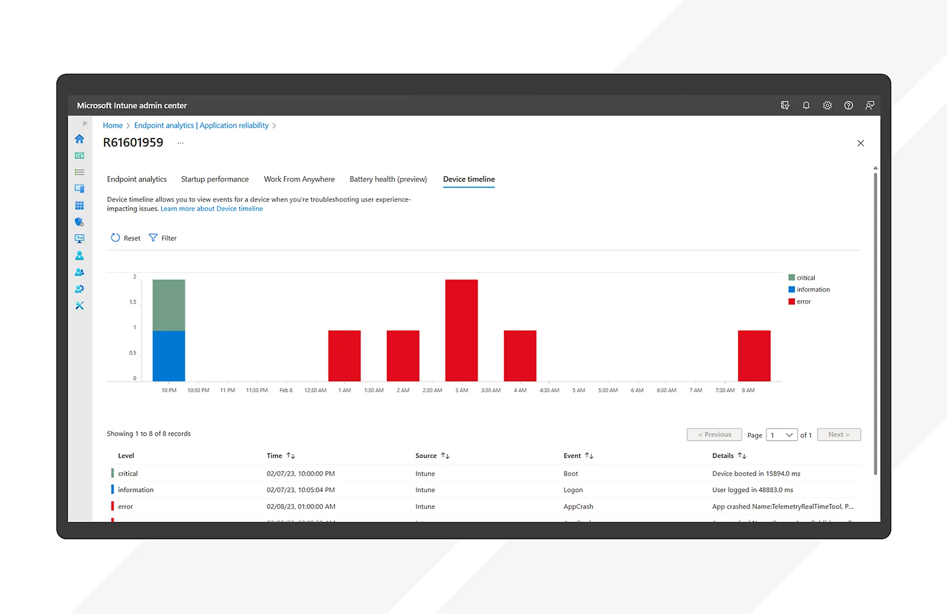 - **Battery health: **Get insight into device battery health, usage trends, and emerging issues to optimize hardware utilization and purchasing.