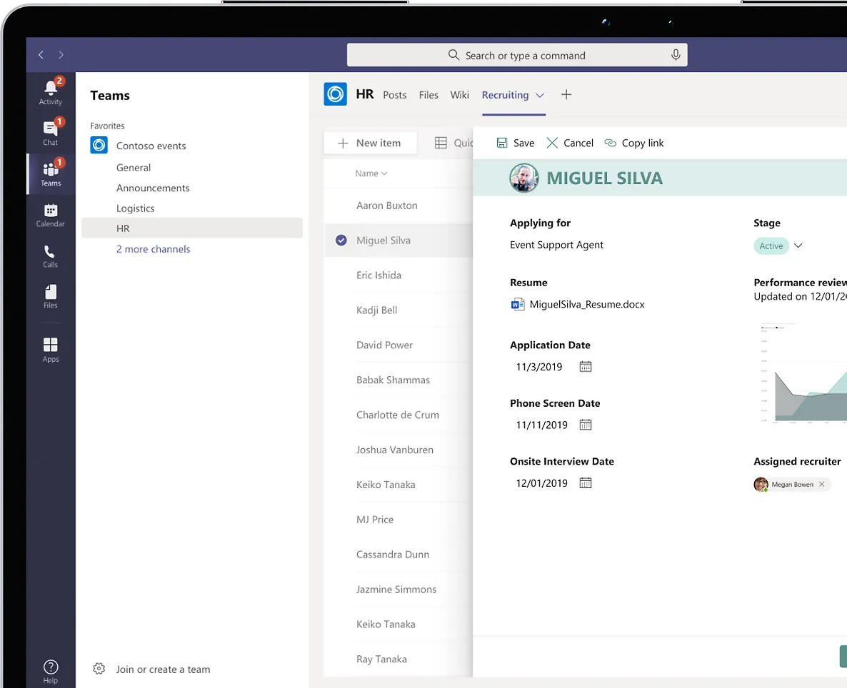 - **Keep everyone in sync with lists in Microsoft Teams: **Work together in real time with conversation and lists side by side. Track what matters most to your team using rules, reminders, and comments.