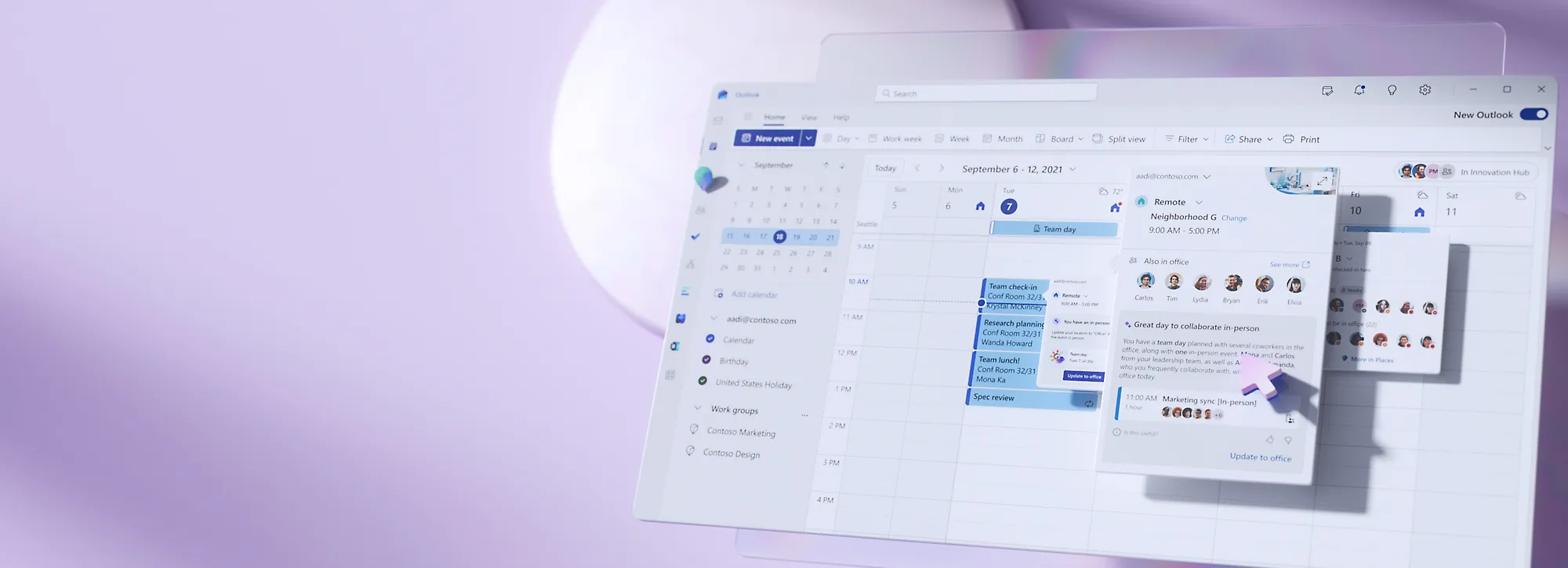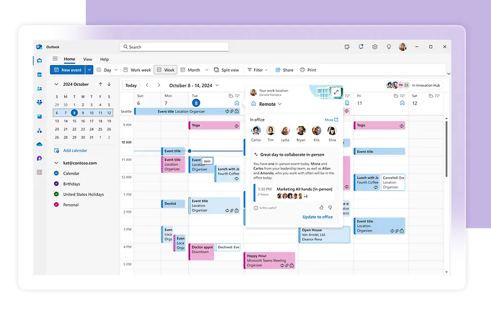 - **Coordinate: **Know where to work to achieve the right outcomes. Align and manage schedules to take advantage of valuable in-person collaboration.