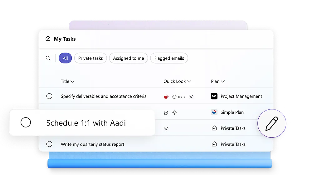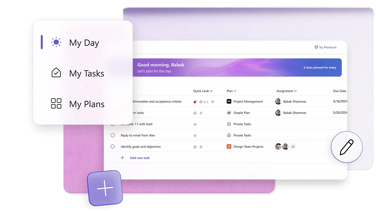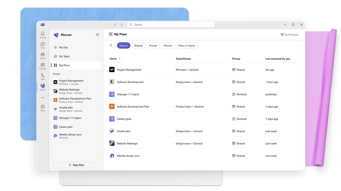 - Task Organization: Create plans and organize tasks into buckets for better structure and clarity.