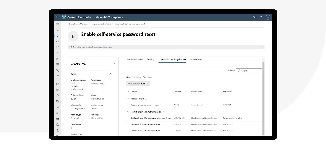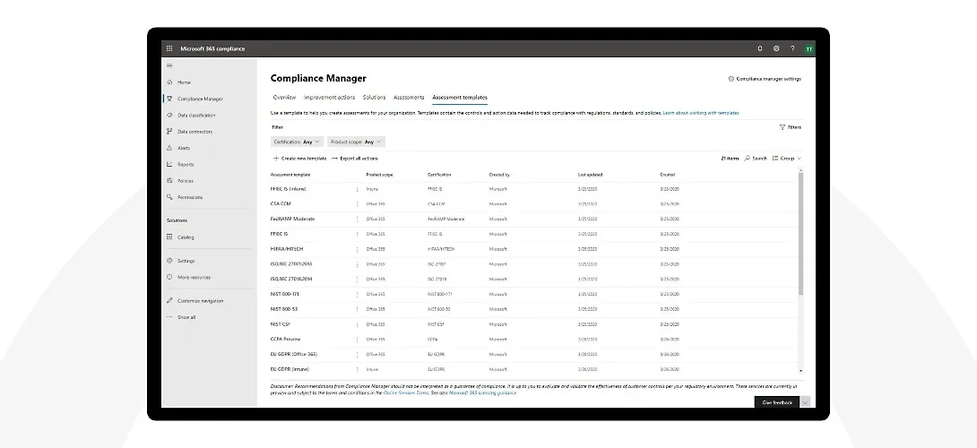 Meet multicloud compliance requirements across global, industrial, or regional regulations and standards with help from Compliance Manager.