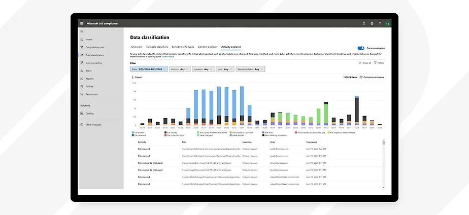 Unify detection, protection, and control of sensitive data across endpoints, Office 365, OneDrive, SharePoint, Microsoft Teams, and Microsoft 365 Copilot.
