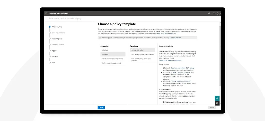 - **Guided experience: **Get step-by-step guidance when you onboard to Insider Risk Management.
