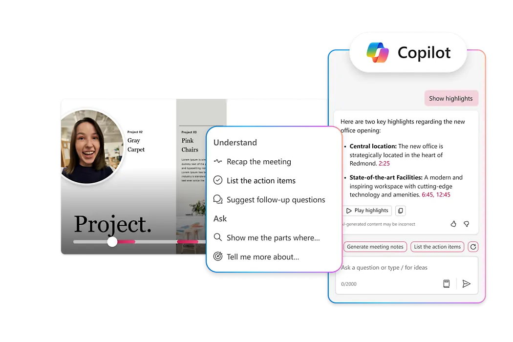 - **Use Microsoft Copilot in Stream: **Get the information you need from videos. Quickly summarize videos, extract details, and locate key sections with Copilot in Stream.