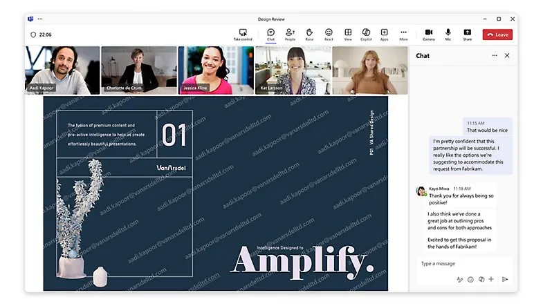 - Message and chat: Keep everything in one place. Have unlimited chats with coworkers and customers before, during, and after meetings and refer back to them at any time.