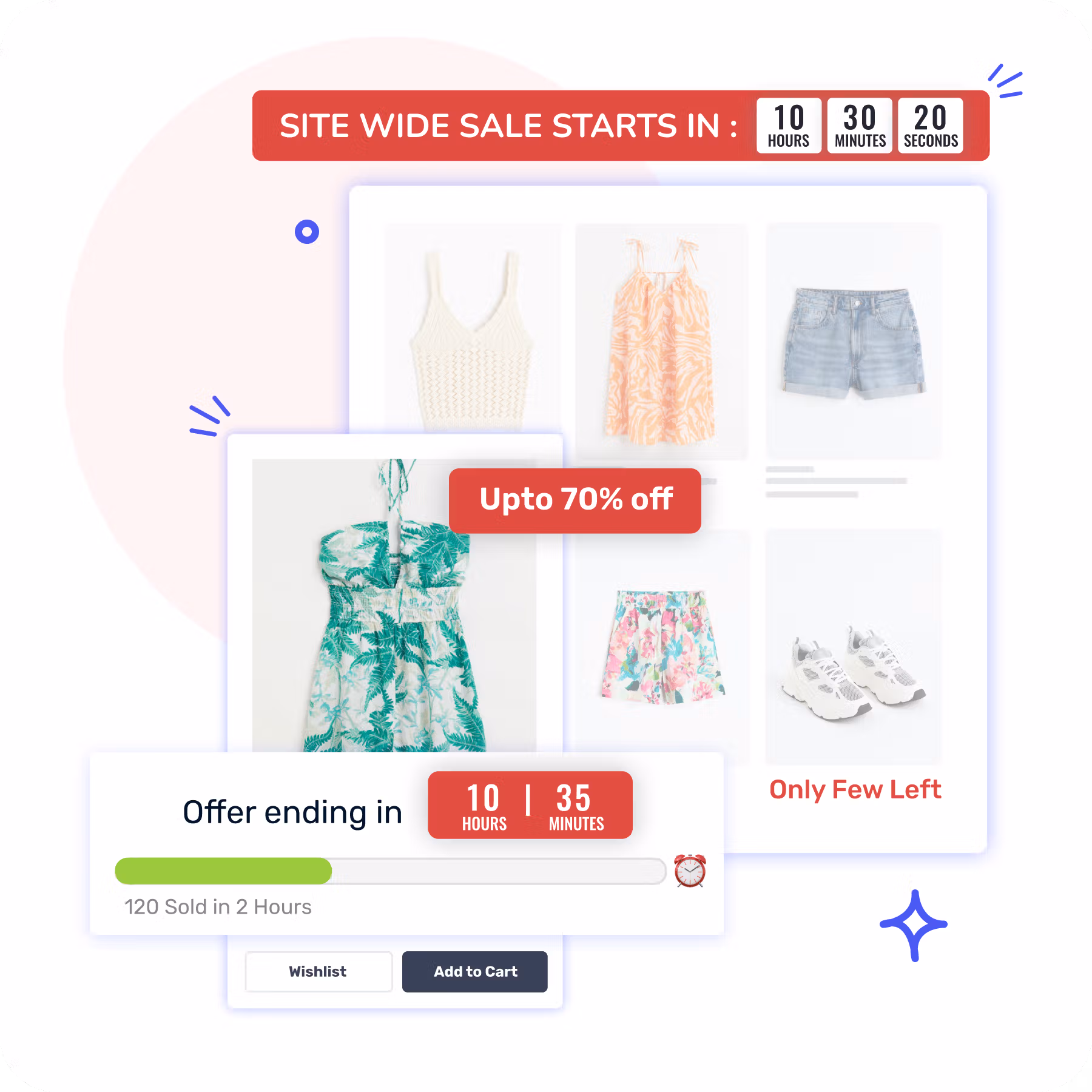 - Conversion Playbooks: ModeMagic delivers pre-built and configurable playbooks such as flash sales, clearance events, and FOMO campaigns that automate promotion creation and targeting across product, collection, and checkout flows.