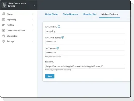 Provide Real-Time Updates and a Streamlined Giving Experience through our Preferred Giving Integration for MinistryPlatform.
