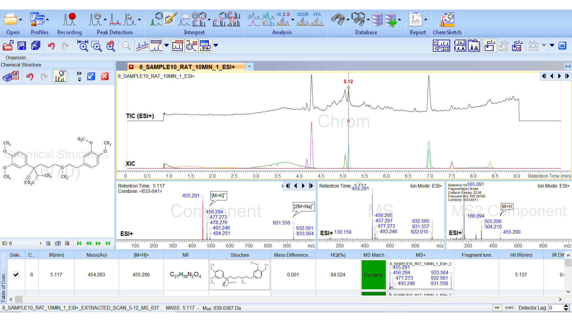 - Identifies compounds in complex samples by deconvoluting LC/MS and GC/MS spectra.