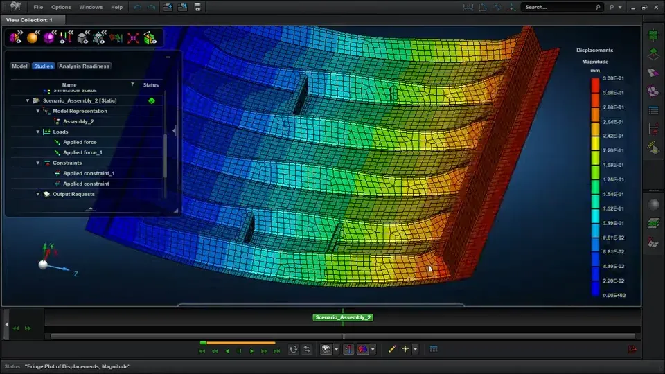 - Midsurfacing: Provides efficient tools for extracting midsurfaces from complex solid models, accommodating varying thicknesses. Dedicated algorithms facilitate the creation of midsurfaces, while additional geometry tools extend and connect these surfaces automatically, enhancing model idealization for analysis.