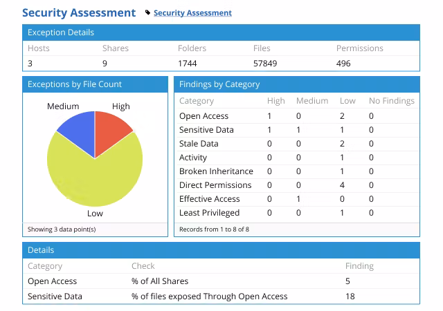 Proactively spot conditions that put your sensitive and regulated data at risk, including excessive user permissions, disabled accounts ripe for misuse and externally shared files.