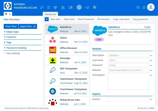 With Netwrix Password Secure, users can securely share passwords, keys, profiles and other business secrets with appropriate teammates.