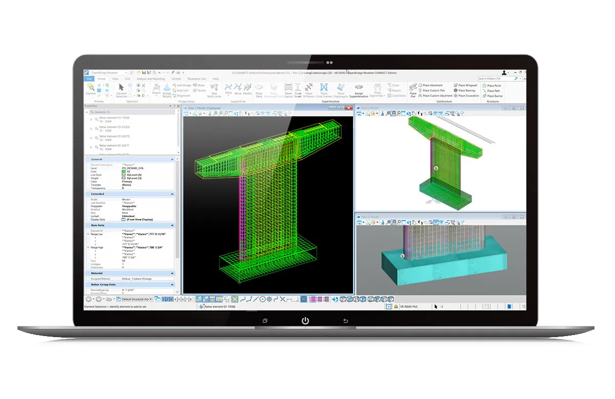 Increase the efficiency of bridge modeling by 40% and save up to 20% of the construction budget by continuing to deliver 2D plans obtained from the 3D models. Deliver plans, 3D design data, earthwork, reports, visualizations, BIM deliverables, and construction data to meet project requirements. Use OpenBridge’s interoperability with ProStructures for concrete detailing for increased productivity and profitability.