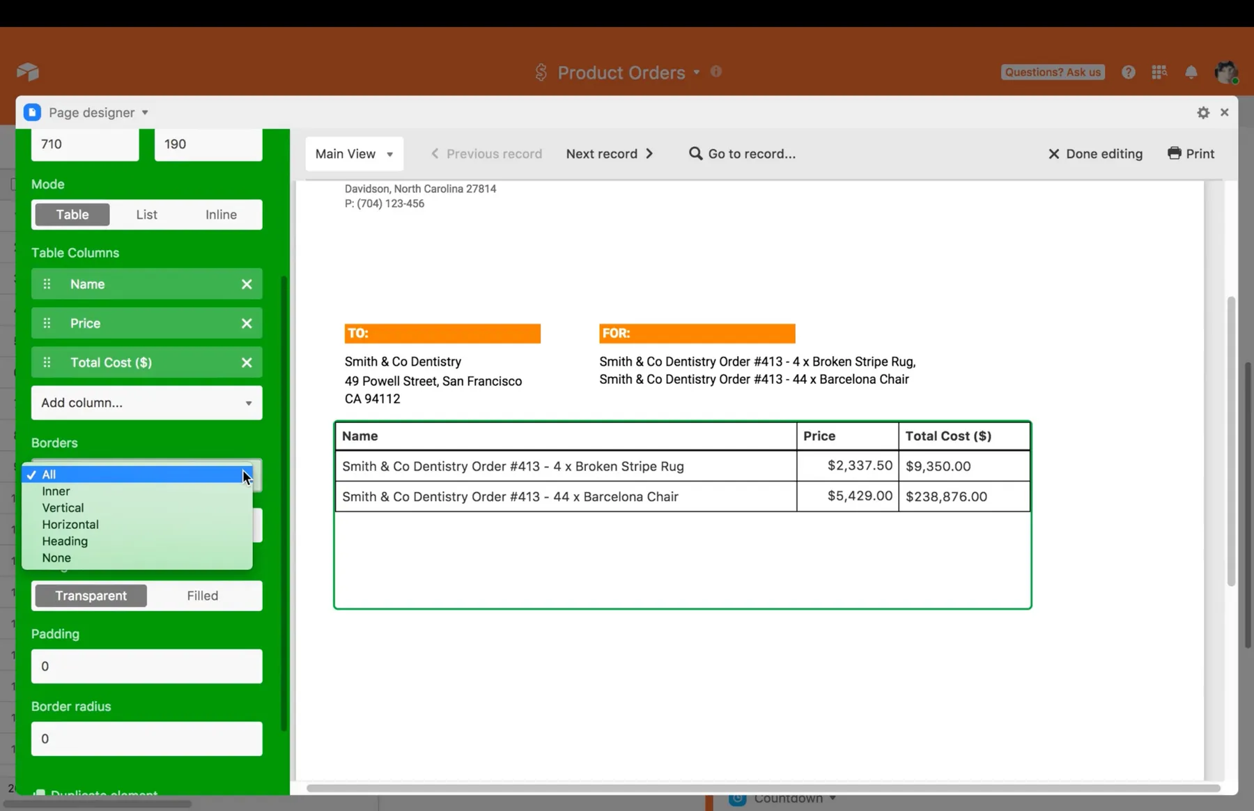Design and print records from Airtable with the Page Designer app.