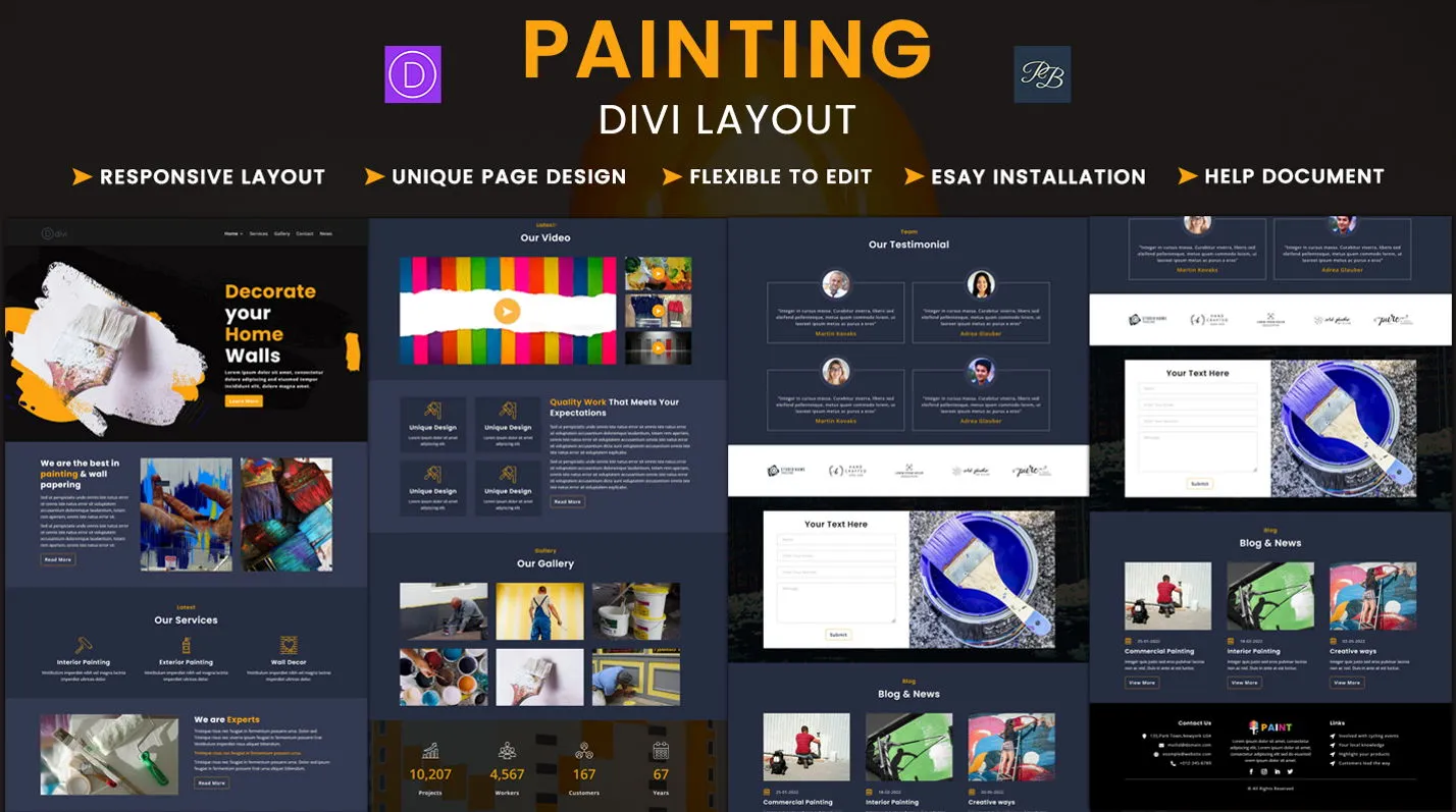 Divi layout for painting businesses with vibrant design, responsive sections, and quick setup.