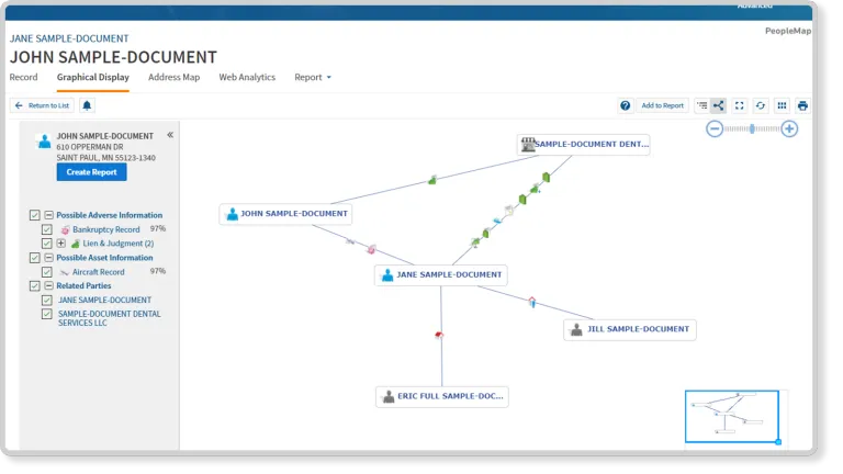- **Discover hidden connections: **Throw away the thumbtack and string and see at a glance how people, assets, and businesses are related.