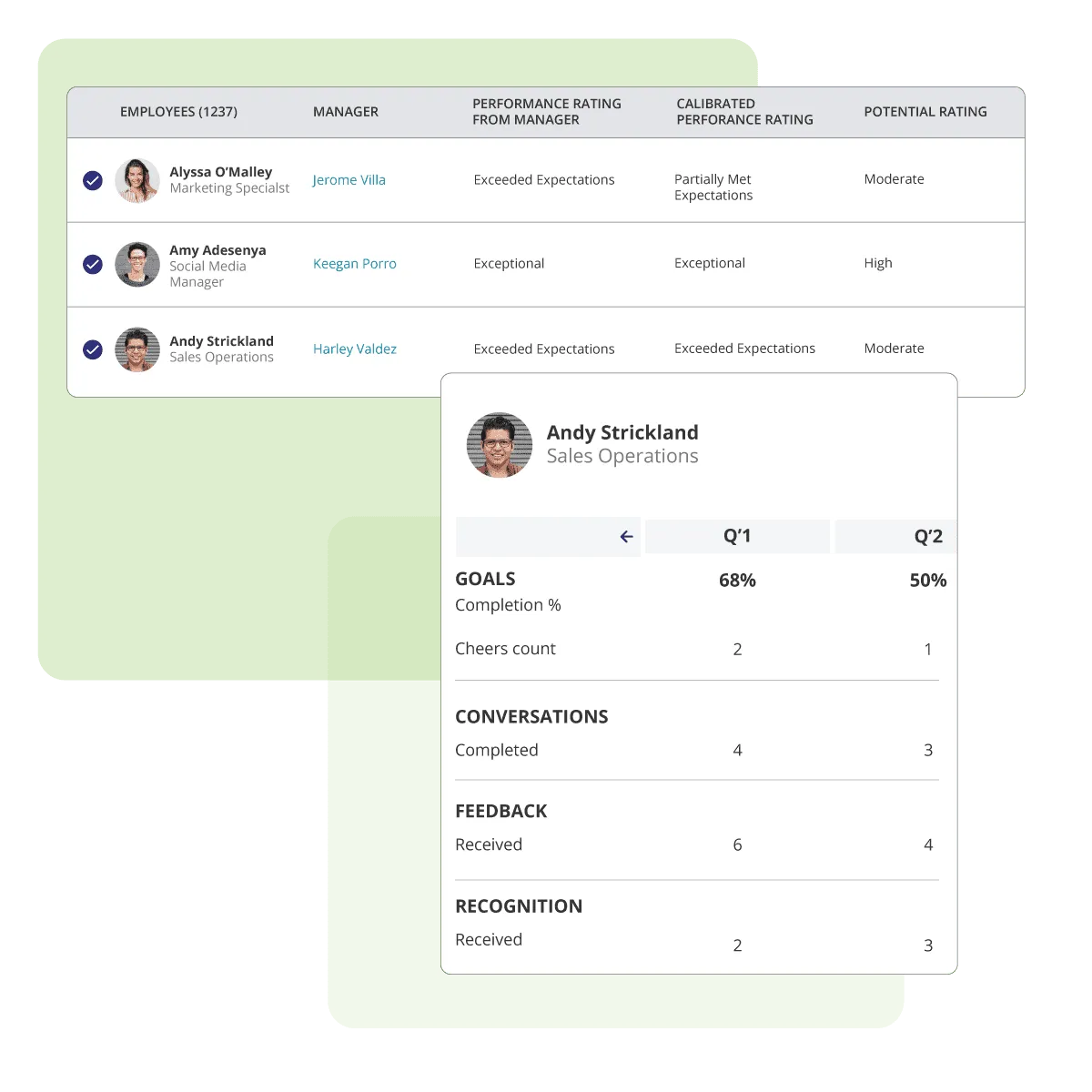 - Side-by-Side Comparison: View all performance data, past ratings, and peer feedback together for easy analysis, facilitating objective decision-making.