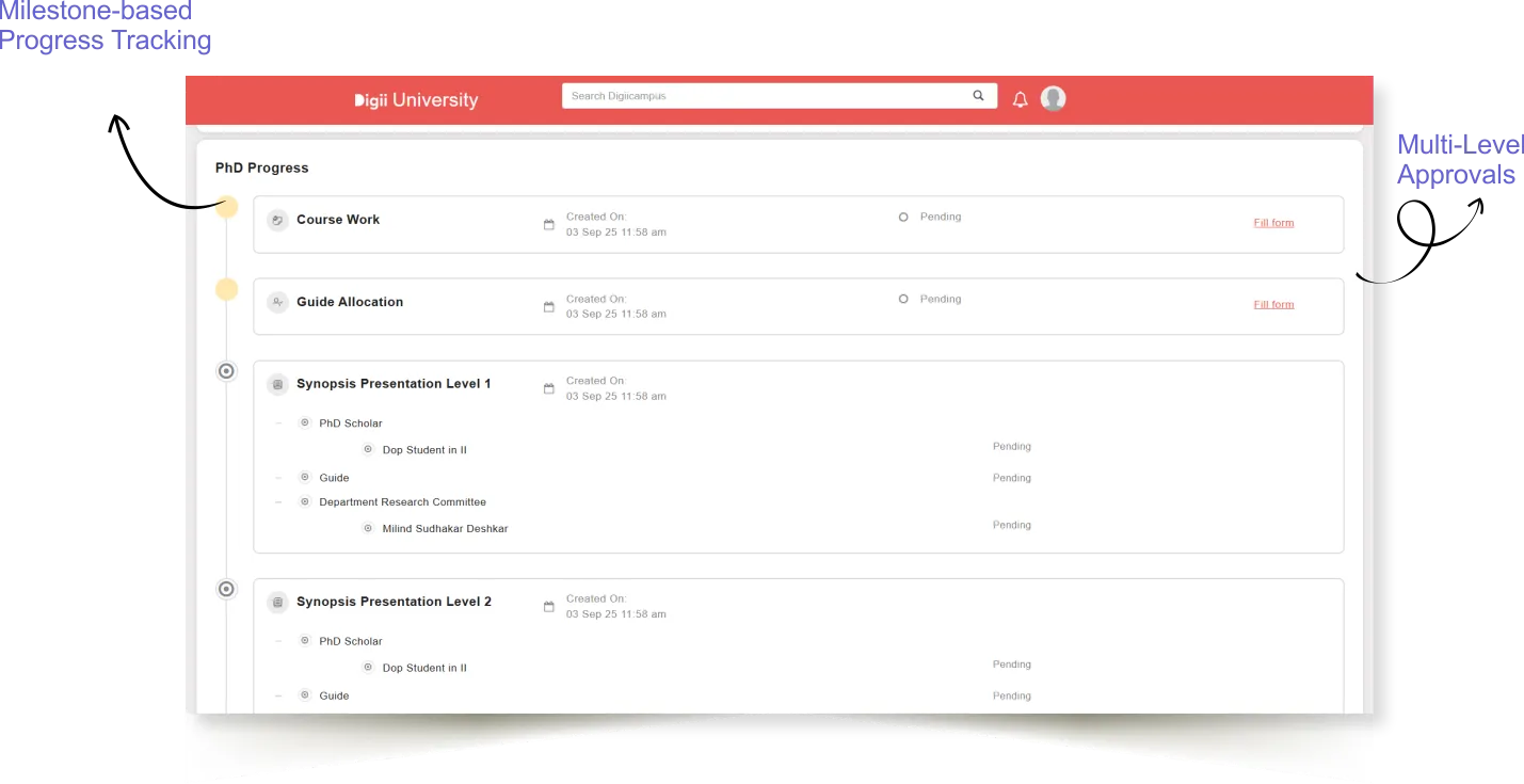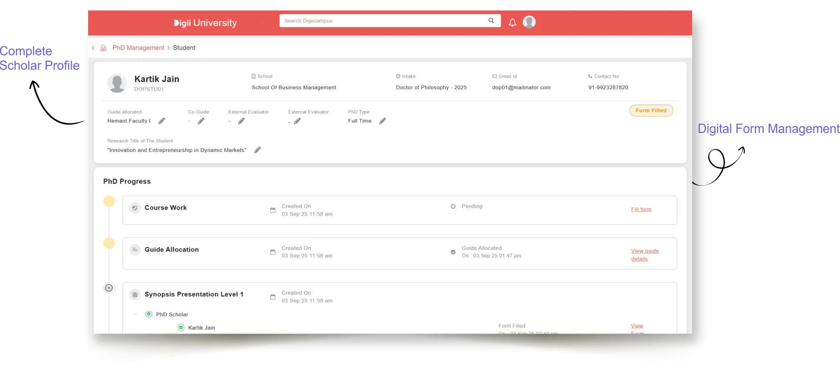 Digii's PhD Management software streamlines doctoral programs with automated workflows, compliance, and collaboration for all stakeholders.