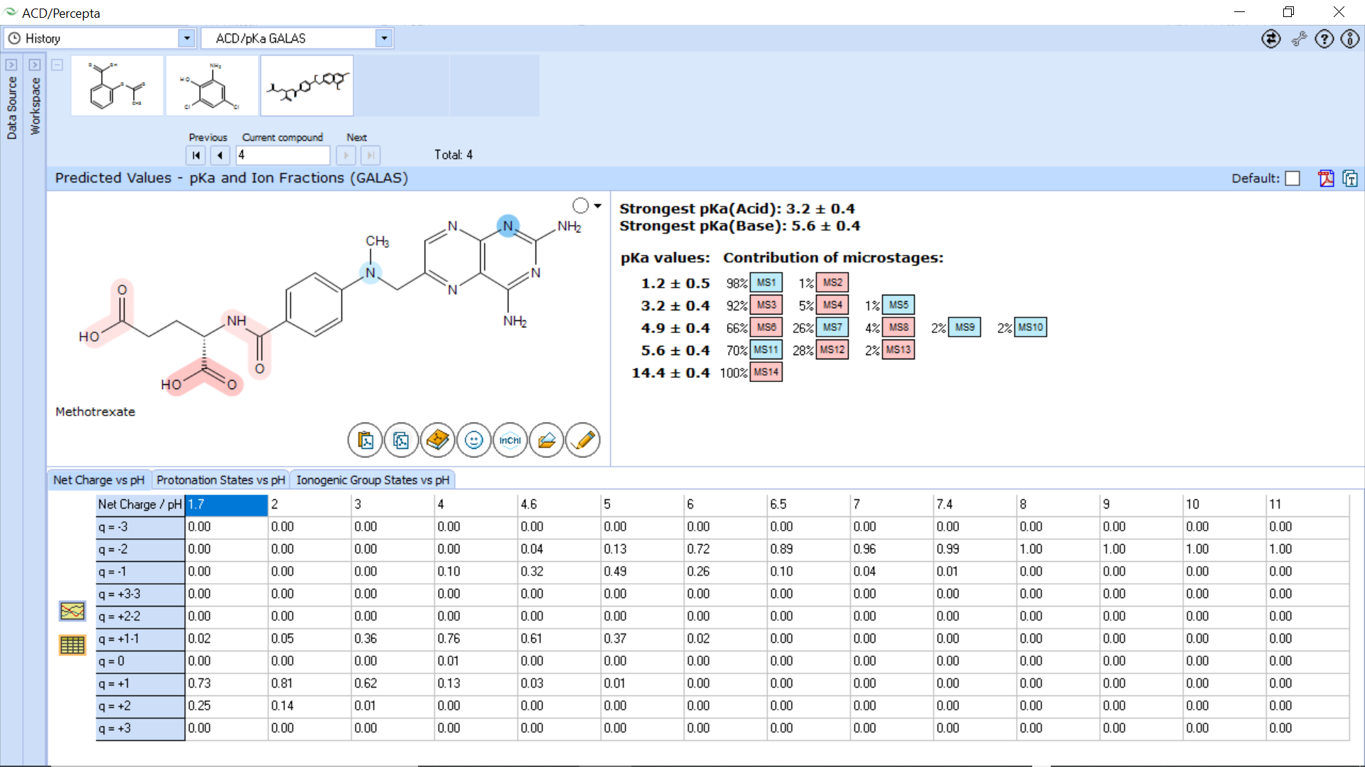 - Color-mapping on the structure helps you easily identify ionizable groups and the structure fragment related to each calculated pKa value. User-defined color-coding of results will help you quickly identify favorable and unfavorable entities in compound libraries.