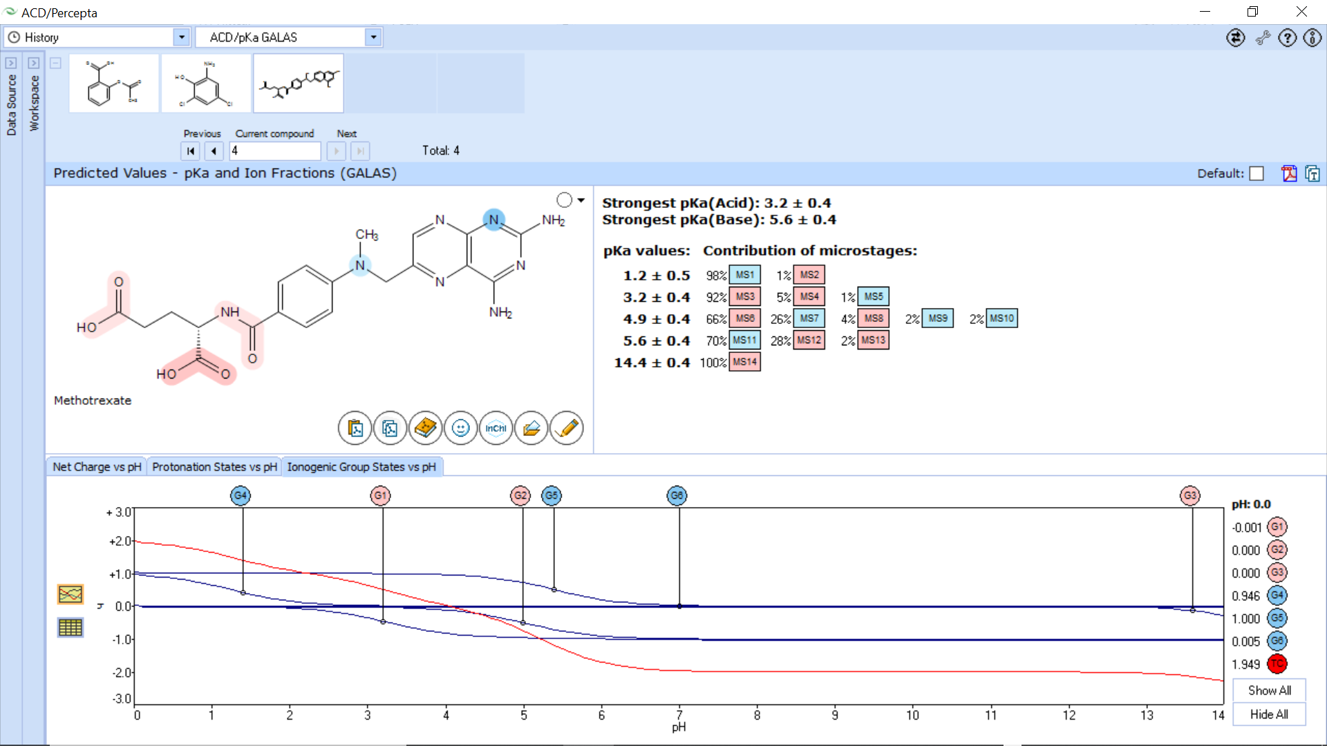 - Assess the distribution of ionized states and microspecies from a variety of plots. Understand the behavior of your molecule with automatically generated plots of pKa versus pH. Identify trends and prioritize compounds easily—create scatter plots, browse, filter, sort, and rank libraries.