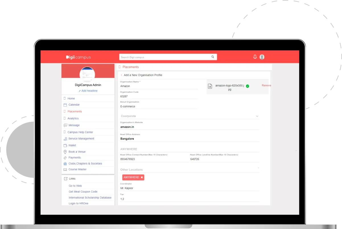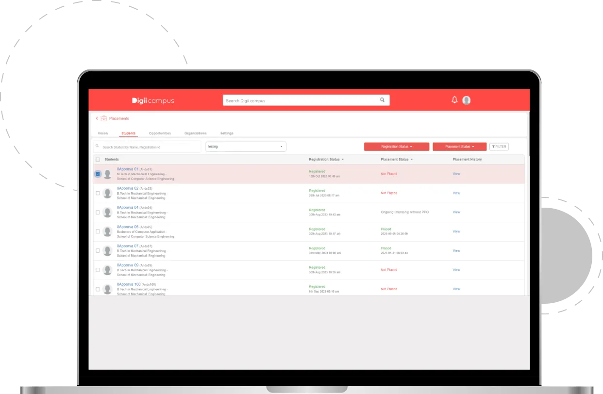 The Placement and Internship Management module by Digiicampus aims to transform the placement process by bringing together all stakeholders onto a single platform. This solution streamlines operations, thereby enhancing career pathways for students. It optimizes collaboration among universities, companies, and students, ensuring smoother placement drives and enriched opportunities for student career growth. Key features include organization database management, student registration management, new opportunity creation and sharing, and a student application view. The system is designed to provide smart placement management for superior oversight and is part of Digii's broader mission to empower higher education institutions with innovative digital solutions.