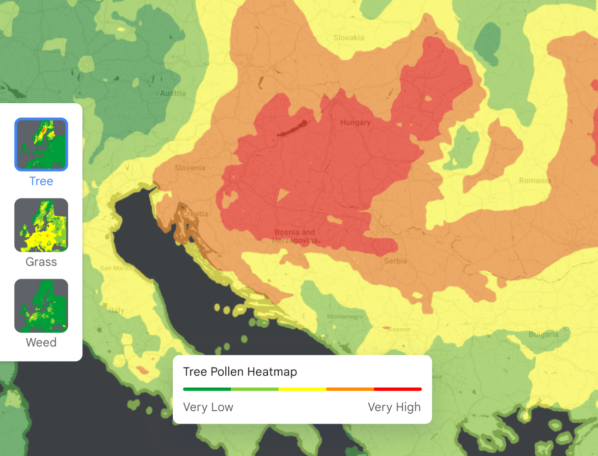 - Color-Coded Heatmap: Visual representation of pollen levels on maps.