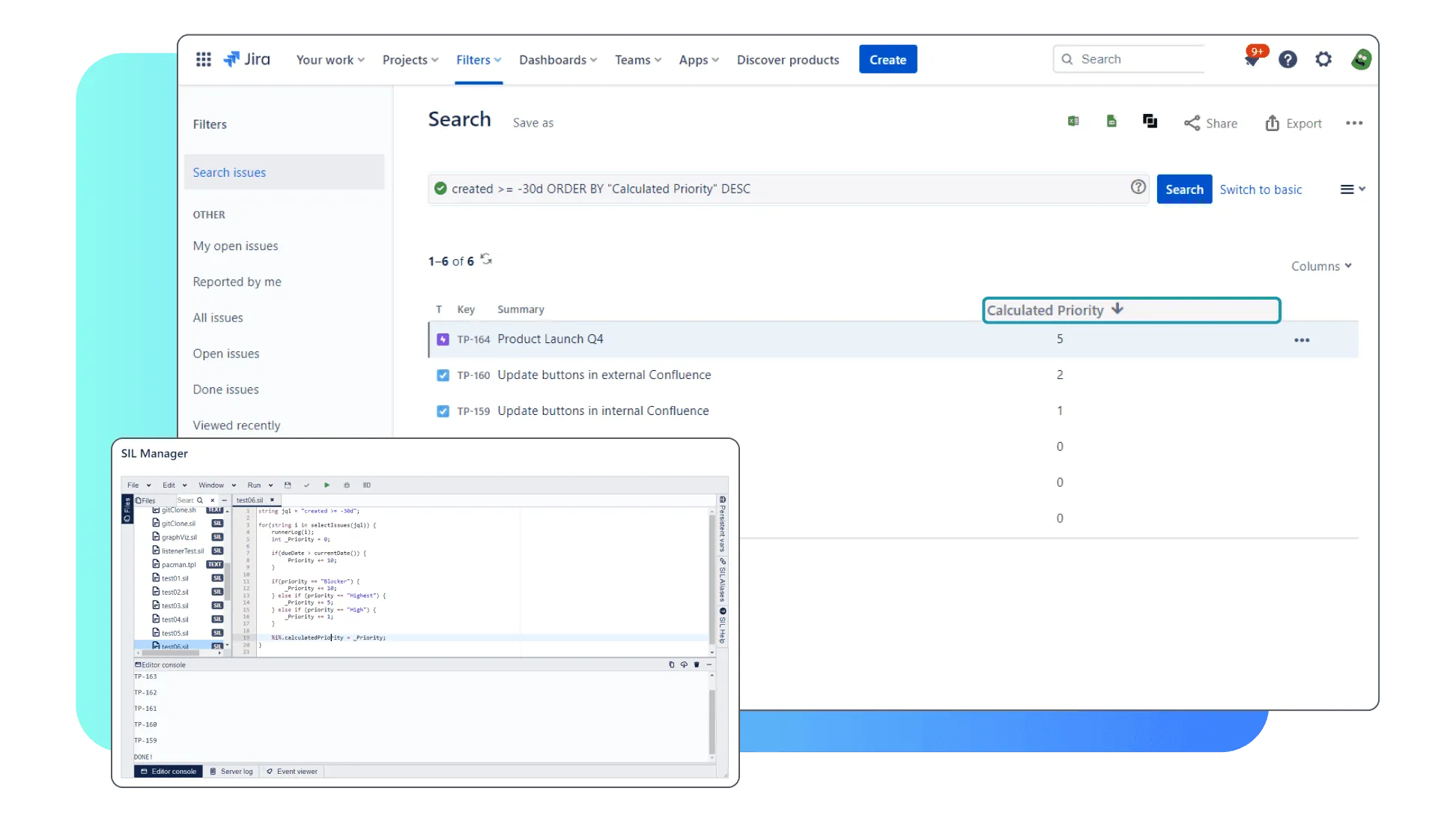 Extend Jira functionality with SIL – a JavaScript-like, low-code scripting language that is easy to learn and fast to adapt.