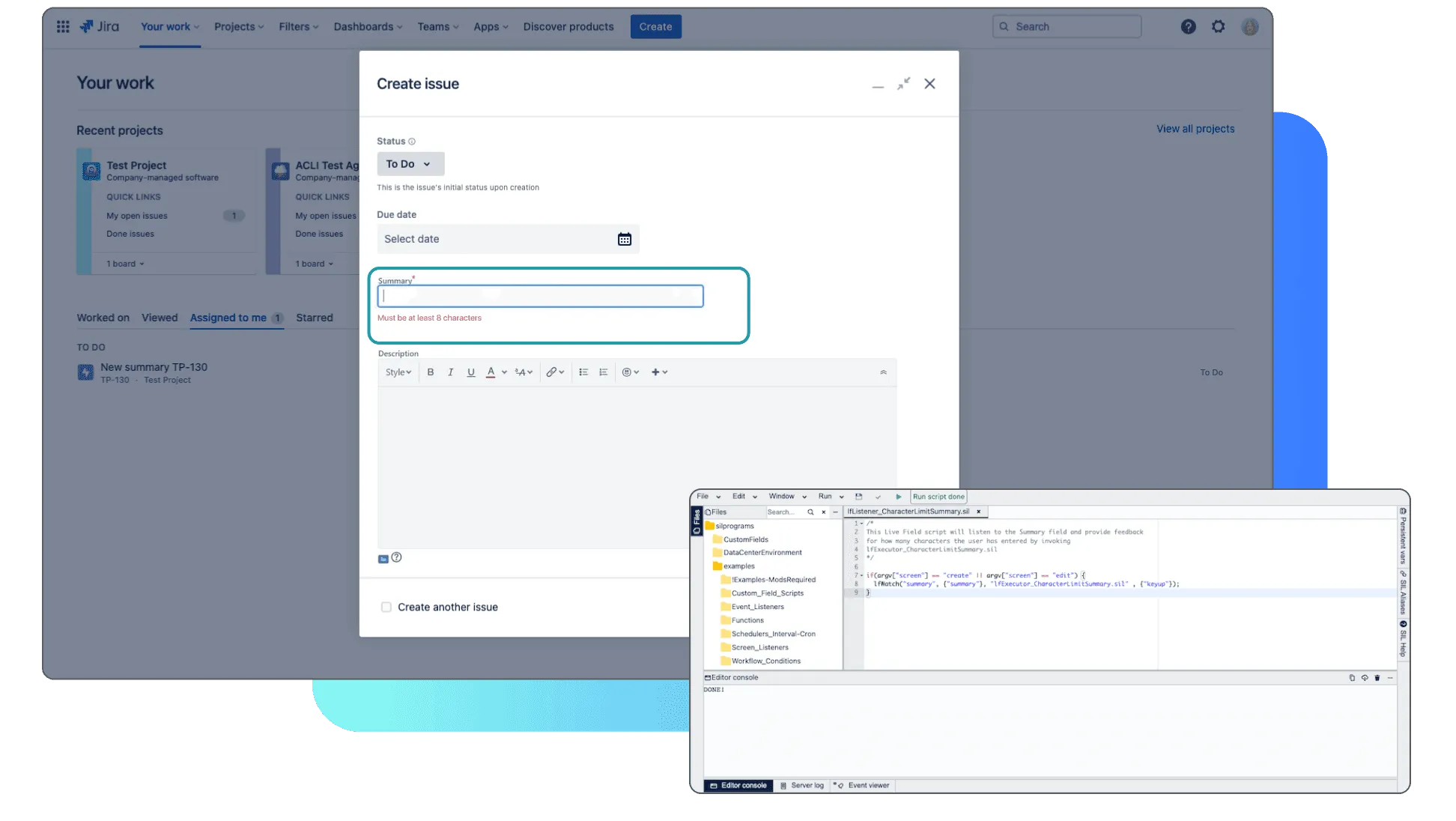 Create unlimited automations to accommodate growing business needs. Control all aspects of your Jira instance, from custom field calculations to UI customization and field behavior.