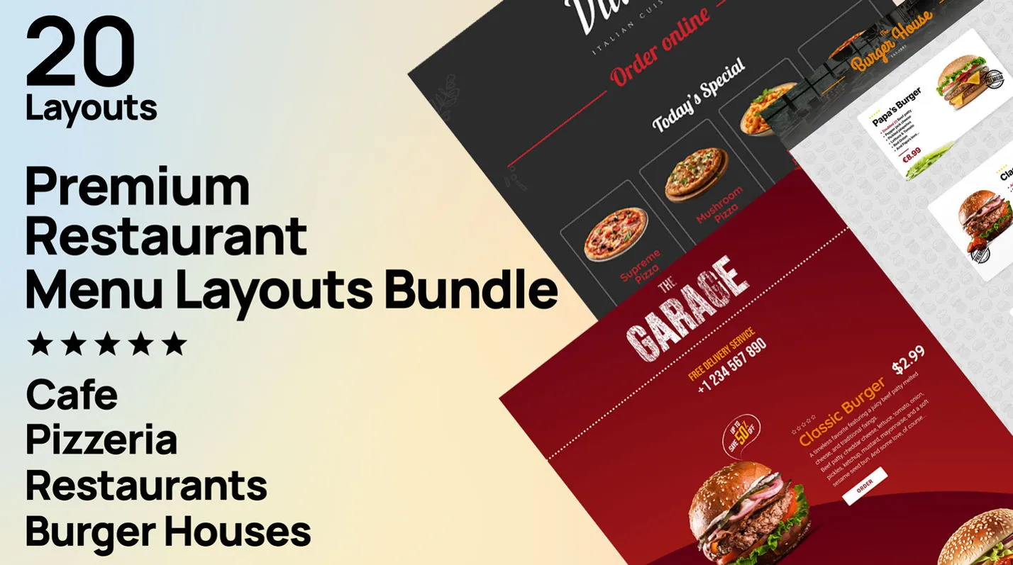 - Multiple Menu Layouts: Includes various designs for different restaurant styles.