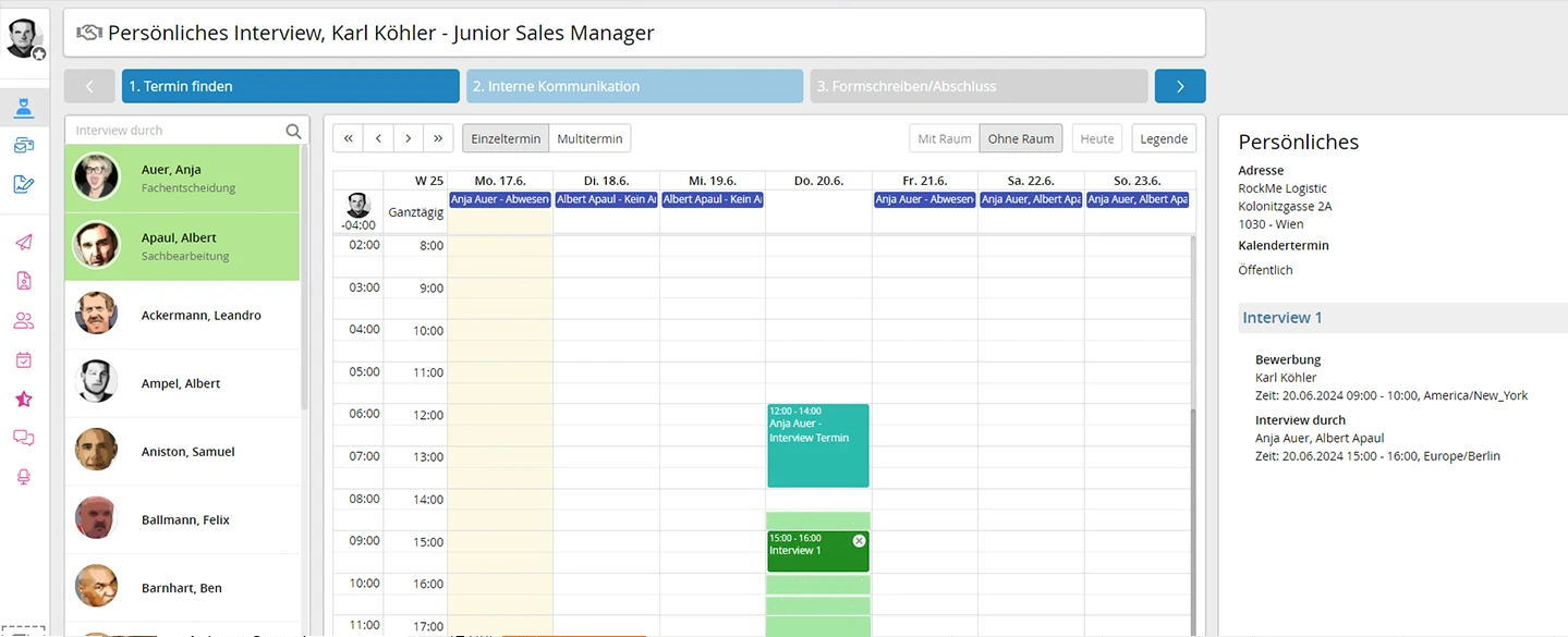 rexx interview management helps employers to optimize the entire process and keep an eye on everything. From scheduling appointments to room management and evaluating the interview – even in the event of appointment cancellations and postponements. This way, the interview process doesn’t get bogged down and no steps are missed to attract the best talent.