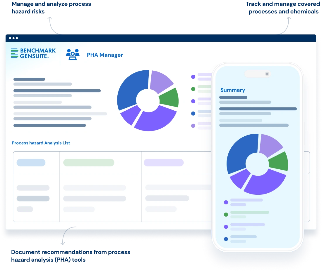 Benchmark Gensuite PHA Manager is a cloud‑based Process Safety Management (PSM) solution designed to digitize, centralize and streamline Process Hazard Analyses (PHAs), safety documentation, compliance workflows and hazard risk tracking. It helps organizations consolidate multiple PHA types, manage piping & instrument diagrams (P&ID), automate revalidations, and deliver analytics and reporting — all within a unified platform that integrates with broader EHS, risk, incident, audit and compliance workflows. It is part of the wider Benchmark Gensuite suite, offering enterprise‑scale safety, environmental and operational risk management.