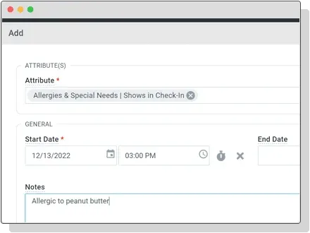 Store additional information about a member, such as allergies or t-shirt size, with custom attributes.