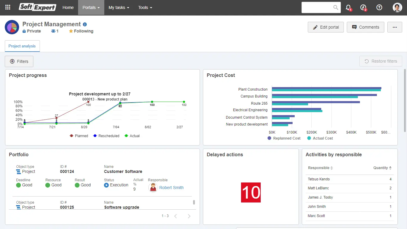 SoftExpert Project is a tool designed to manage and optimize project portfolios, ensuring strategic alignment, resource optimization, and long-term success.