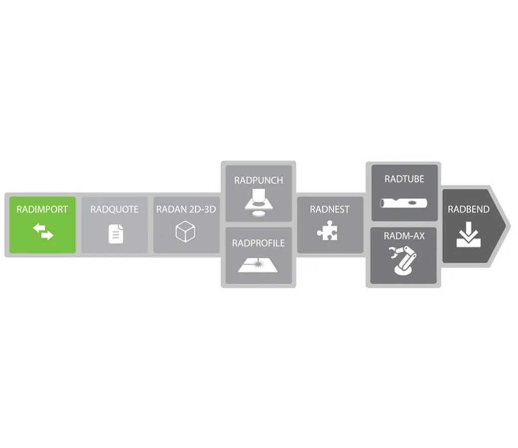 RADAN Radimport is a specialized software solution designed to streamline the preparation of parts for nesting in sheet metal fabrication. By automating the conversion of geometry files into tooled RADAN parts, Radimport significantly reduces the time and effort required in the work preparation phase. With a single action, users can transform a selection of geometry files into a comprehensive nest project, enhancing efficiency and productivity in the manufacturing process.