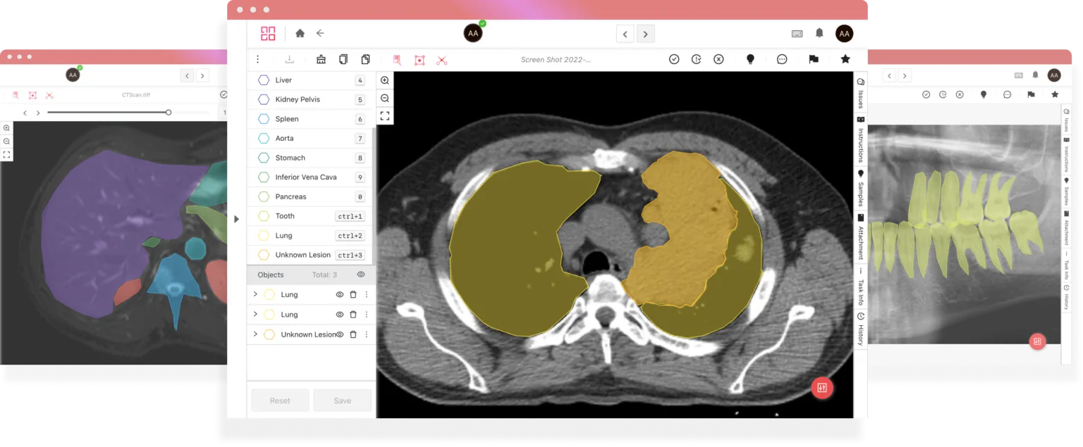 iMerit Radiology Annotation Product Suite unites our global expert workforce, secure data management, collaboration tools, and annotation automation on iMerit Ango Hub platform.