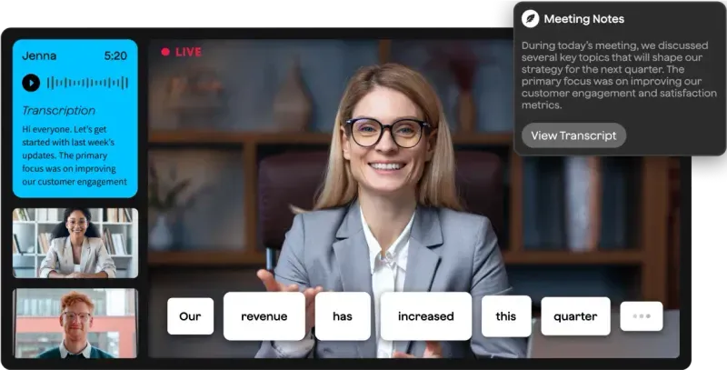 Accurate cloud-based live transcription and subtitling to create better user experiences and integrate with large language models (LLMs).