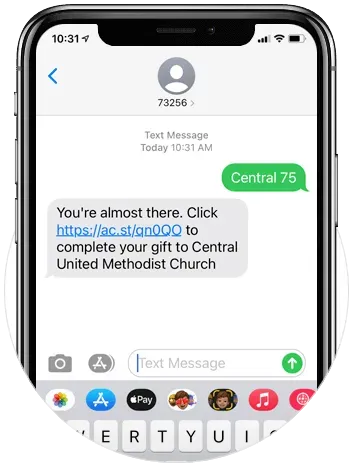 Provide your donors the most convenient way to give. Text your church’s unique keyword and amount to the giving number provided. It’s that simple!