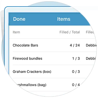 Planning is easier with Realm as your church event planning software. Organize what items people can sign up to bring to your next event. You can set the quantity of items you need and let people choose what and how many they want to bring.
