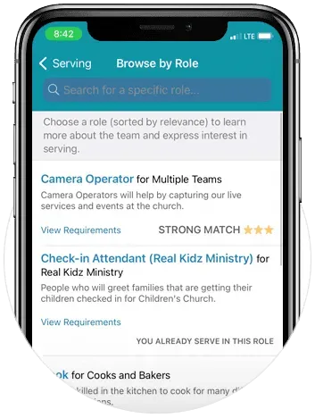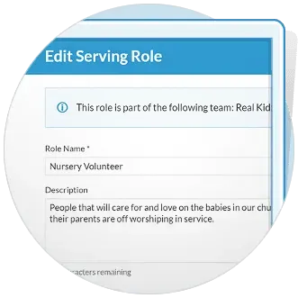 Every volunteer plays a crucial role in your church. That’s why Realm church volunteer management system allows you to build the unique roles you need. Whether it’s help in the nursery, an usher or greeter, or anything else, you can create the role in Realm.
