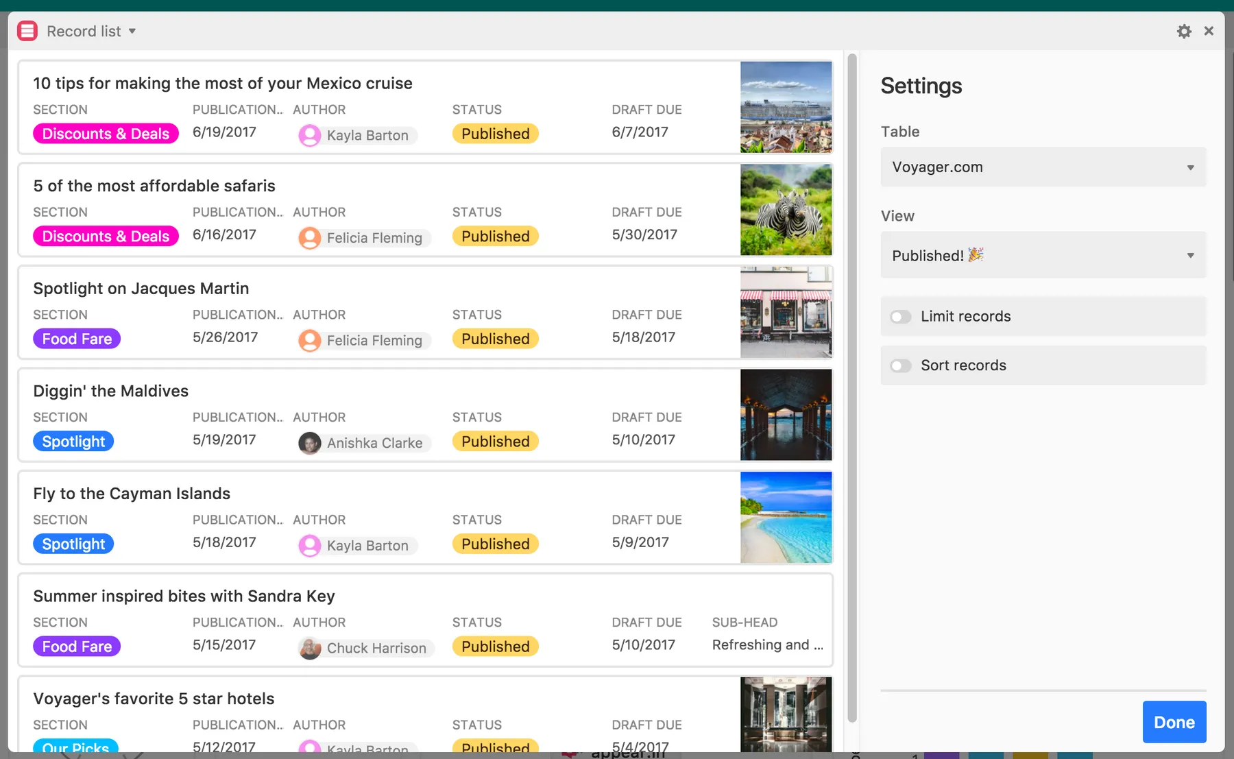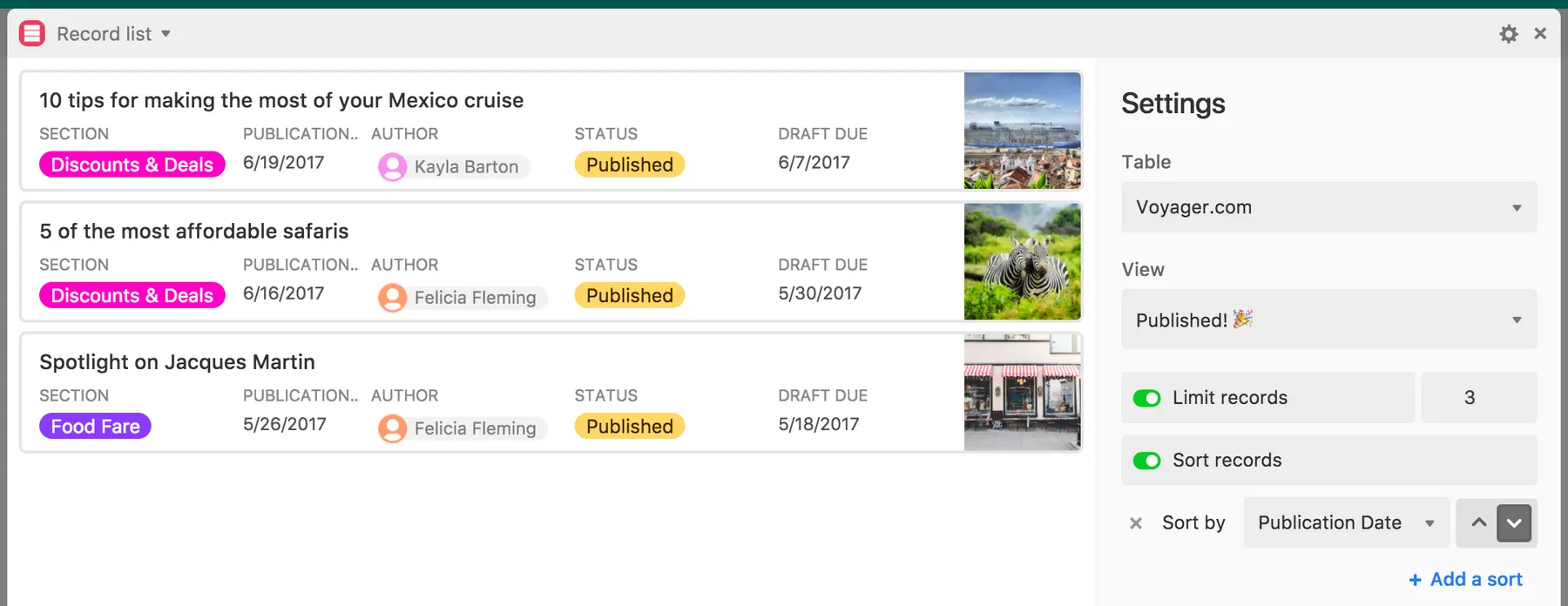 List records from a view on Airtable with the Record List app.