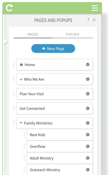 Create pages for each area of your church. You can create a page to welcome visitors, let congregants know about events in your church, share a staff directory – anything you want.