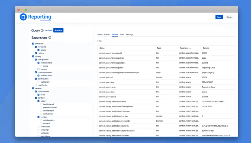 Use Confluence Query Language (CQL) structured queries to fetch the right data across all of your existing data and metadata. Explore View allows a deep dive into your Confluence to surface the right data points.