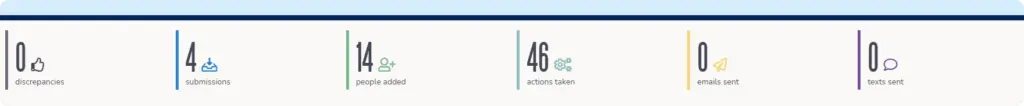 View key statistics for each form, csv, or visitor card batches. The dashboard will indicate if any discrepancies were discovered and show progress on outreach and actions.