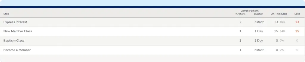 Get a snapshot of where people are in each track as well as the progress of steps within the track. You can view all information about the track or filter to only show your assignments.