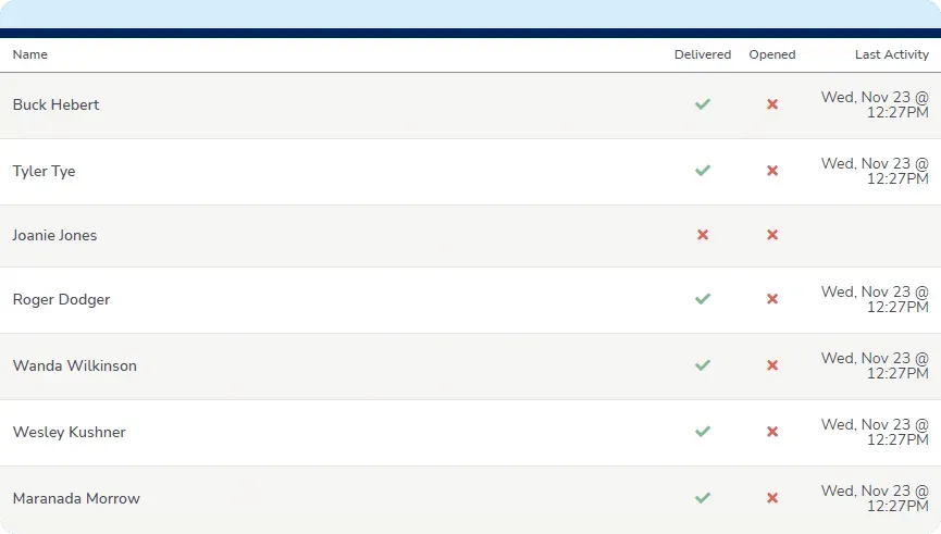 See the progress of each campaign. View overall stats in a dashboard or view details for each recipient.