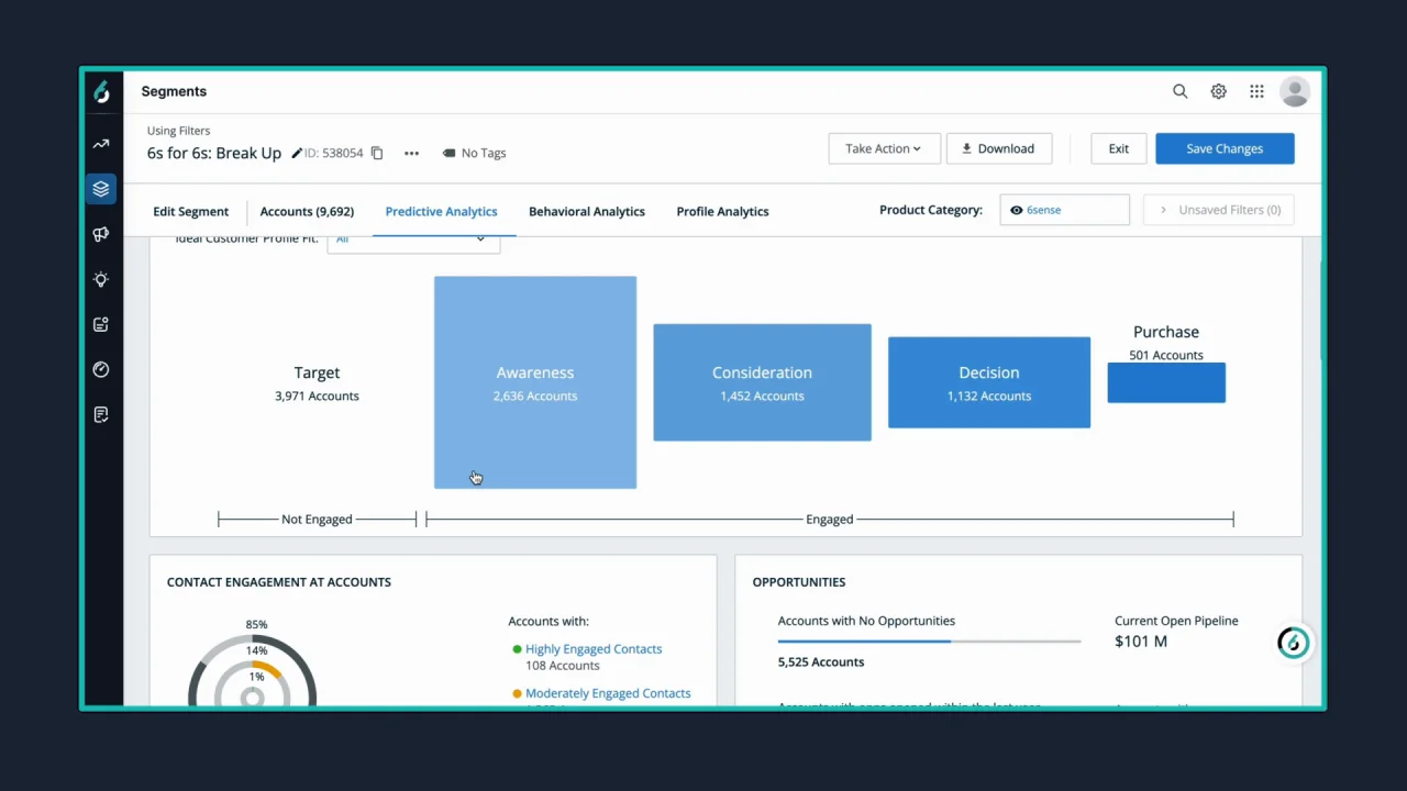 - **Predictive Marketing: **Use 6sense AI predictions to eliminate the guesswork around timing and trigger marketing campaigns towards the best accounts.